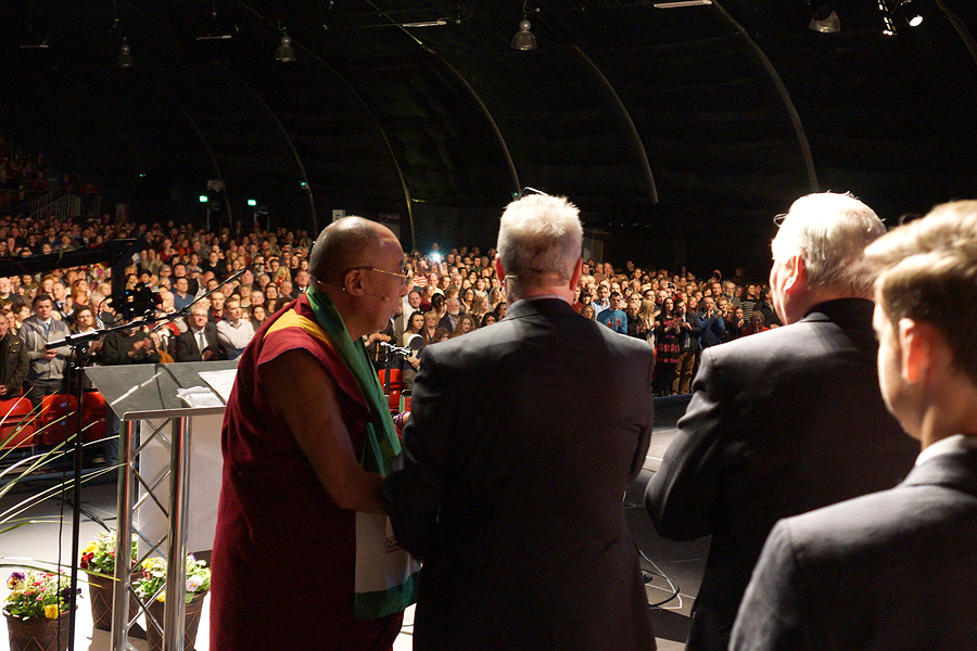 稍后,达赖喇嘛尊者向2500多名当地民众发表了演讲。(录音)尊者强调说,和平是我们赖以生存的基础。然而,要想创建和平,非暴力是主要因素。和平不是指没有问题,而是指用非暴力的方式,如对话来应对解决问题。