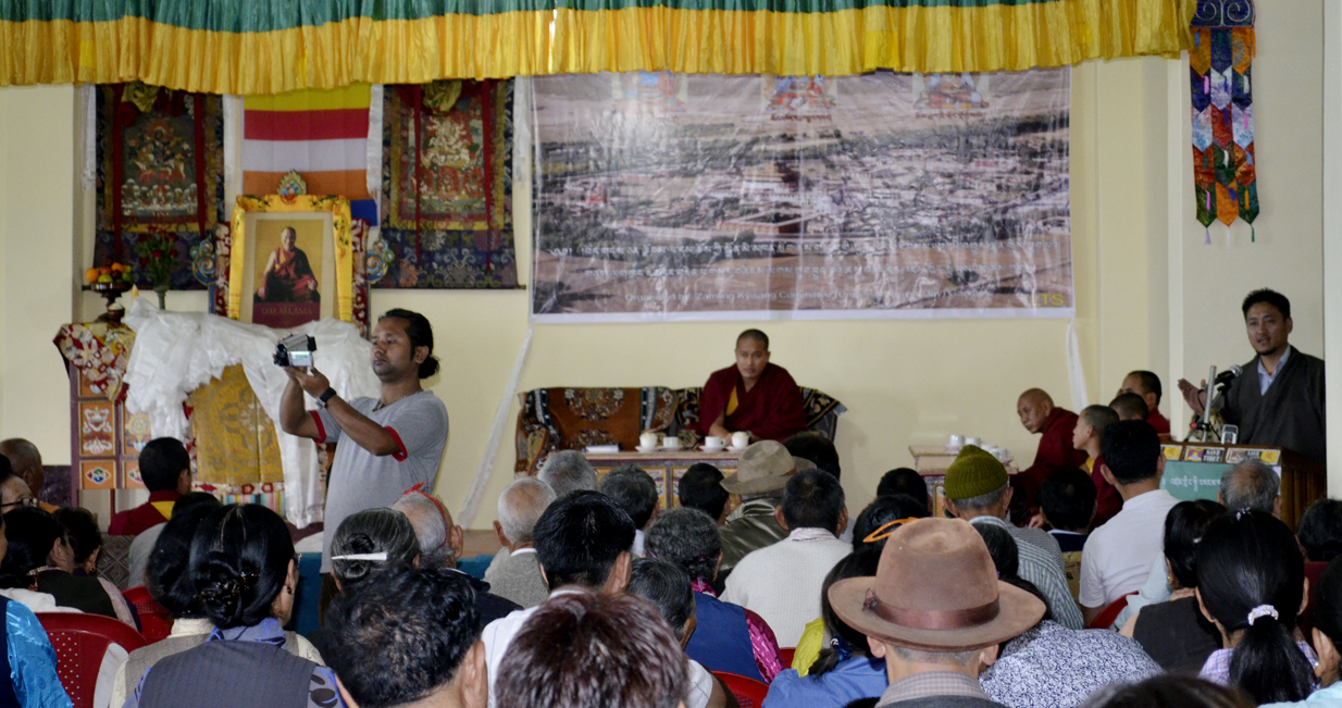 据介绍,法会开始前,藏人们举行了传统的炜桑活动,向达赖喇嘛尊者法相敬献哈达。随后甘托克西藏难民社区主管晋美多杰发表演讲,色拉寺科古仁波切应邀出席并给予教诲。法会上还播放了藏人行政中央歌剧院制作的电影。