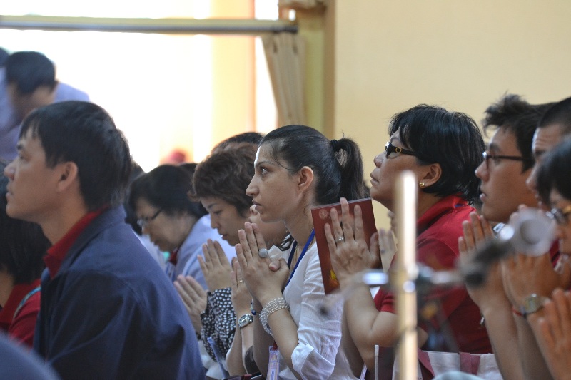 达赖喇嘛表示,(录音)不管你是否信仰宗教、与否承认有没有造物者,每个宗教都提倡慈爱,鼓励人们培养慈心,创造一个快乐和幸福社会环境。因此,我非常欣赏天主教一位前任教皇的格言,他说“信仰与道理必须是同步和相应的”,这确是很重要。