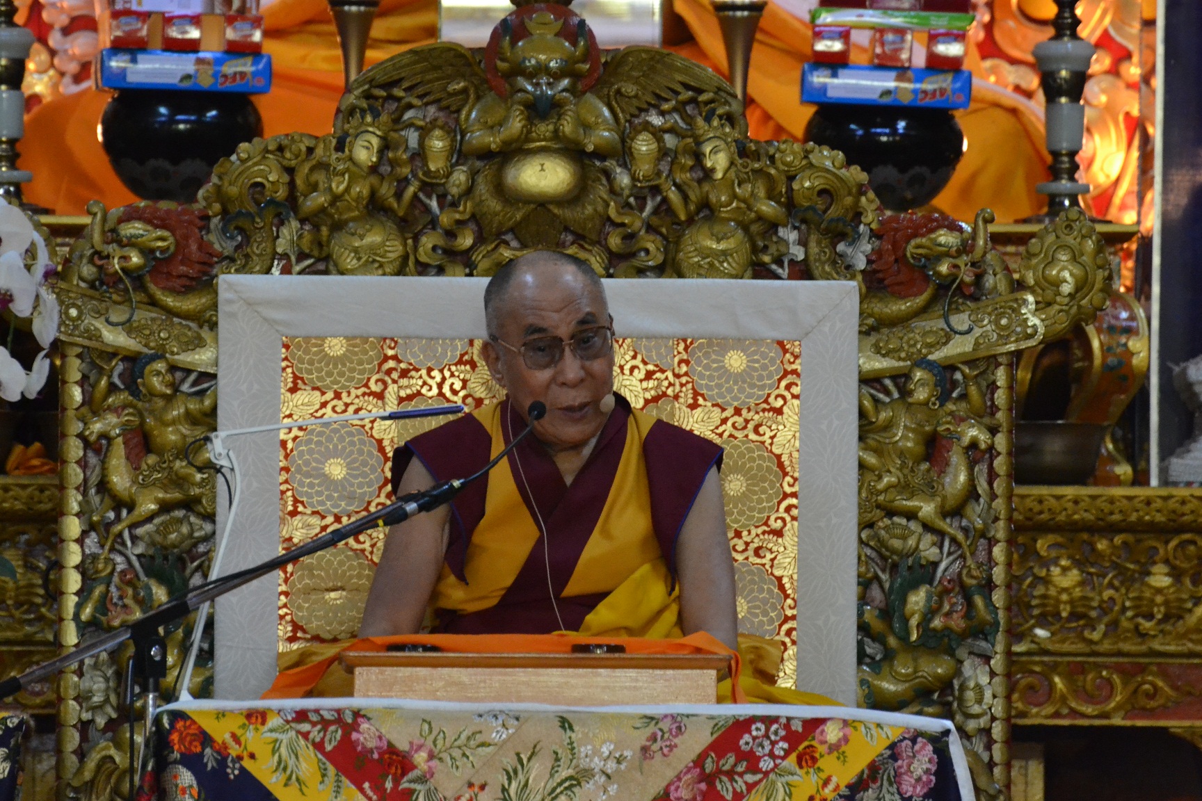 今天(7月1日)开始达赖喇嘛尊者在达兰萨拉大乘经院中,向200多名越南佛教徒为首的来自世界各地和达兰萨拉僧俗等数千人讲授了宗喀巴大师所著的《三主要道》,开示信众要认真了解佛法内涵,约束个人行为,创造宗教社会的和谐。明天(2日)尊者将向信众传授药师佛灌顶。