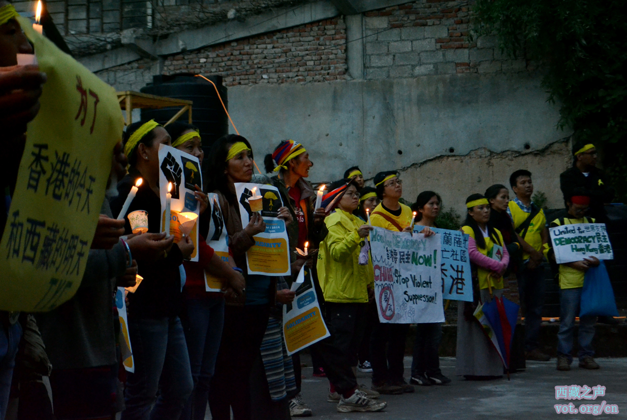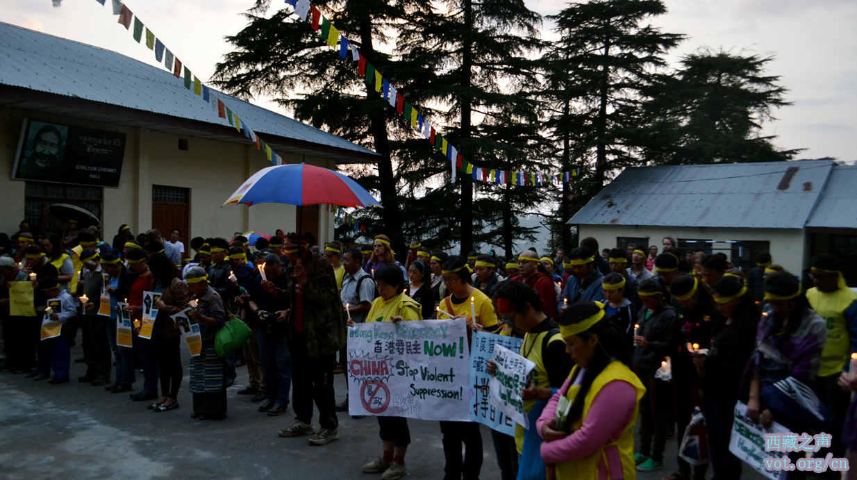 【西藏之声2014年10月2日报道】为了表达对香港占中民主运动的支持和同情,流亡藏人社区最大的非官方性组织西藏青年会组织民众开展烛光游行和集会活动。