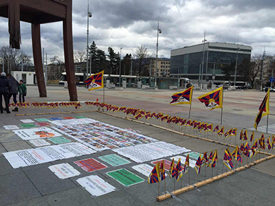 从2012年12月10日国际人权日开始,以寻求国际社会对当今西藏境内的严峻局势及恶劣的人权状况给予关注和支持为目的,利用每月第一和第三个西藏传统周三拉嘎日,在瑞士日内瓦联合国总部前,开展西藏问题游说请愿活动的瑞士达仓•贡却和扎丹仓•巴桑次仁两户藏人家庭,以及后来加入活动的流亡藏人阿旺巴丹和给仓•扎西拉姆家庭成员,于本周三(1月14日),再次开展了第37次西藏问题游说请愿活动。