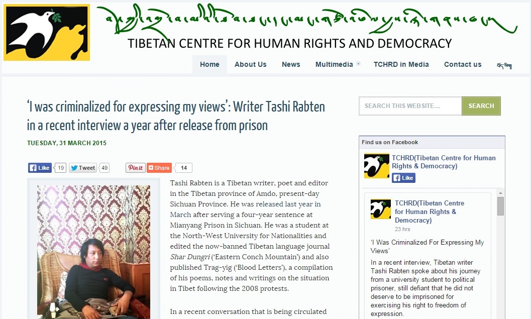 而位于印北达兰萨拉的西藏人权与民主促进中心,将扎西热丹近期接受采访的一段内容译成英文,其中他强调自己因言获罪,不仇恨任何人,也不感到丝毫的后悔。