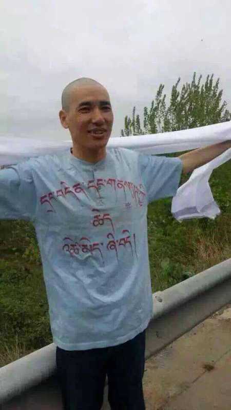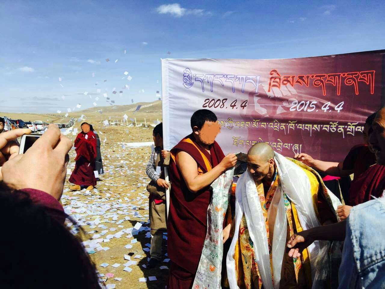 【西藏之声2015年4月6日报道】2008年被中共当局指控“向外透露示威消息”,非法判处7年徒刑的西藏阿坝县僧人成列嘉措,近日刑满获释。当地藏人僧俗举出写有“人白、法黑”字样的横幅,隆重迎接了成列嘉措。