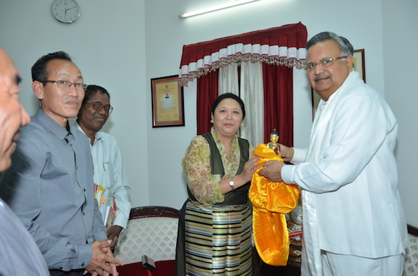4月13日当天,藏人行政中央内政部部长嘉日卓玛,在内政部增设秘书其美仁增、曼尔巴特(Mainpat)藏人社区主管甘丹诺布等的陪同下,拜会了印度恰蒂斯加尔邦首席部长拉曼辛格 ( Shri Raman Singh)。