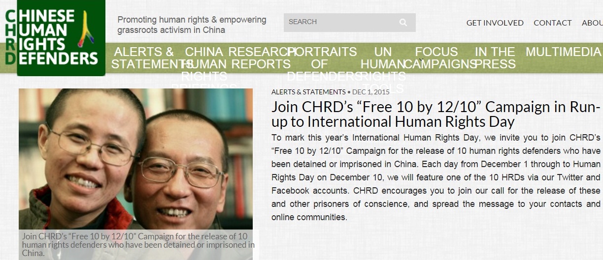 12月10日“国际人权日”即将到来之际,中国人权捍卫者组织(CHRD)在网上发起吁请活动,要求中共当局从12月1日至12月10日“国际人权日”为止,每天释放一名“良心犯”。