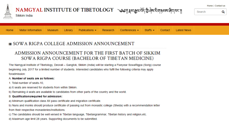 位于印度锡金邦首府甘托克境内的“朗杰西藏文化研究院”(Namgyal Institute Of Tibetology Gangtok)在其官网上发布消息指出,该研究院将设立藏医历算院,并着手招收首届学员。
