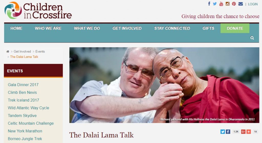 9月10日,尊者将出席由北爱尔兰慈善机构“战火中的儿童”(Children in Crossfire)所举办的活动,并以“实践中的慈悲”为主题,发表公共演说。