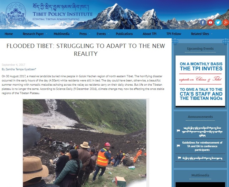“西藏政策研究中心”官网于9月4日刊登了该中心研究员丹巴坚参的评论文章。丹巴坚参谴责中共政府的错误环境政策,导致西藏境内的灾难不断。