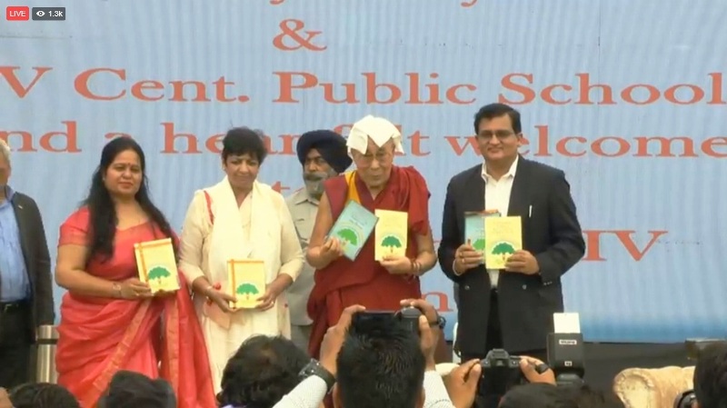 达赖喇嘛尊者于昨天(10月15日)从达兰萨拉启程赴新德里,今天(16日)上午在北方邦密拉特地区的DAV公立学校(Centenary Public School),为印度世俗伦理推广组织“AyurGyan Nyas”编写的普世伦理教材揭幕。该份教材将在一些学校中进行采用。