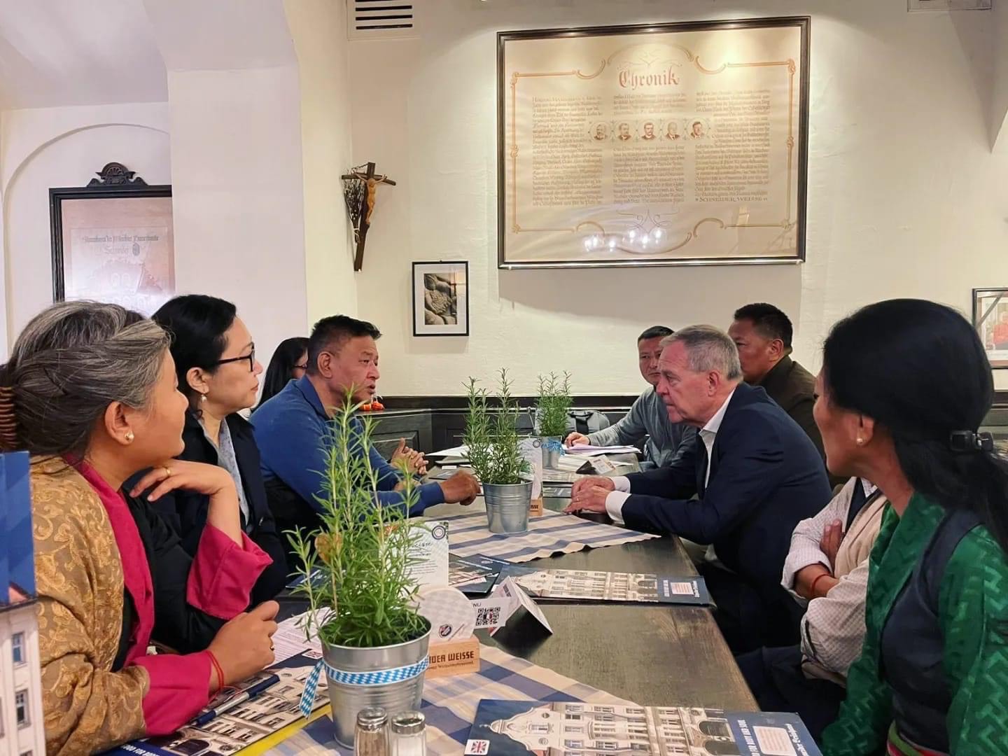10月9日,这支由藏人行政中央内阁与议会组成的访问代表团会见了德国慕尼黑藏人社区的民众。在此期间,司政边巴次仁向该社区的民众发表了演讲。接着,该代表团在柏林会见了德国自由民主党(Free Democratic Party)青年翼组织“自由青年”的代表。