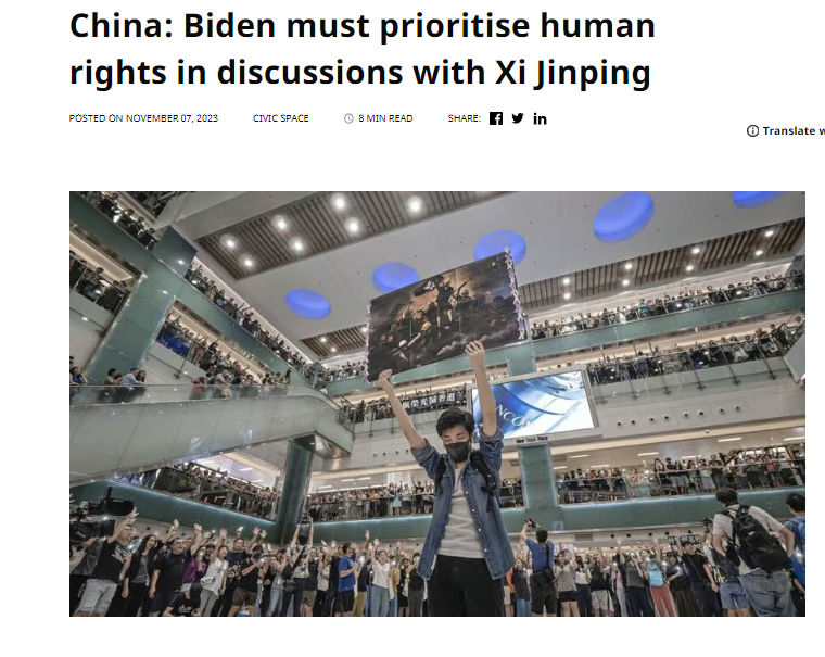与此同时,亚太经济合作组织(APEC)会议即将在美国旧金山举行,“国际西藏网络”、“自由西藏学生运动”、“西藏人权与民主促进中心”、“香港观察”以及“世界维吾尔大会”等59个人权组织在会前向美国总统拜登发出呼吁信,敦促他在与中国领导人习近平讨论时,向对方提起中共统治下各地区的人权状况。