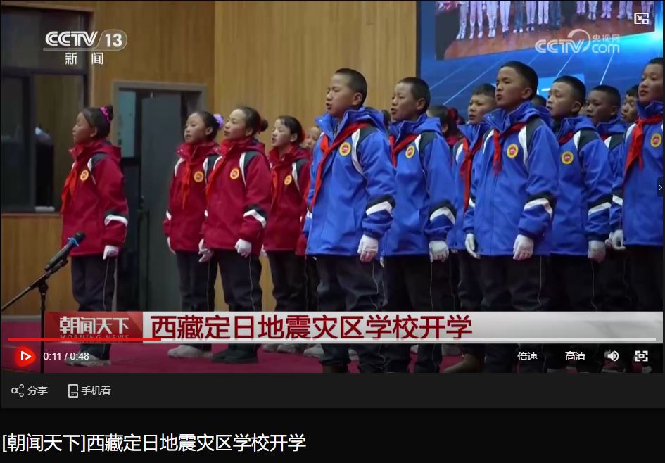 报道称,定日全县76所学校开展了除险修缮和维修加固,“达到”安全开学条件。受灾最严重的3所学校的1479名学生转移至县城四个学校进行安置。除了因病因事请假的学生外,灾区近5万学生于3月5日如期到校开学。