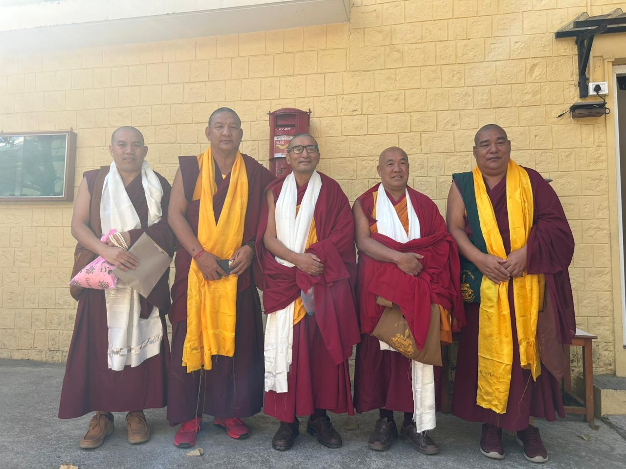 【西藏之声2025年10月27日报道】达赖喇嘛尊者今天在达兰萨拉接见了印南甘丹寺两个僧院(东顶与北顶)的两位堪布(住持)。东顶僧院堪布强秋桑杰向本台表示,他们此次前来拜见尊者,主要是祈请尊者在年底访问印南时莅临甘丹寺,参加该寺为尊者举办的长寿法会,并为该寺新建的灵塔金殿与佛像进行开光加持。