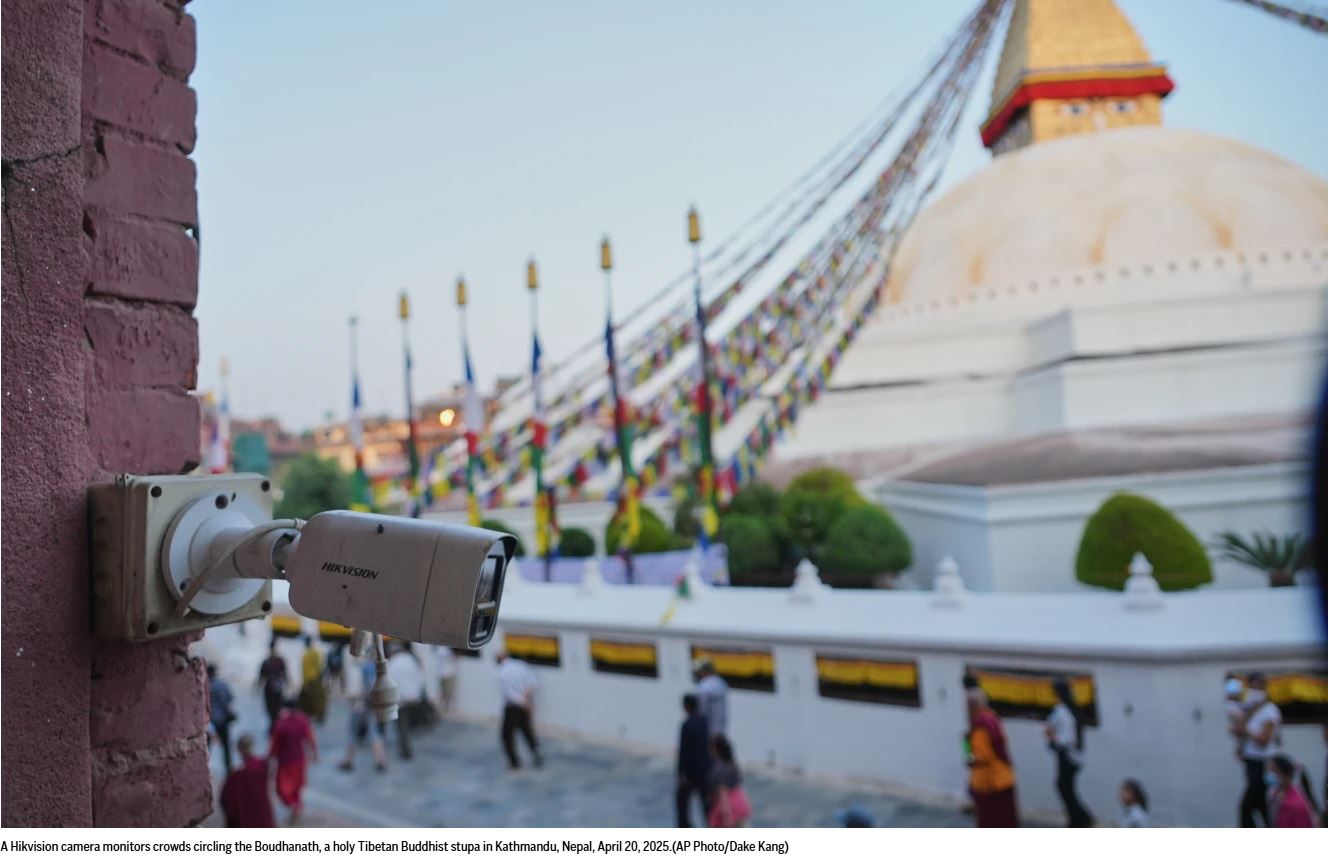 报道指出,加德满都满愿塔曾长期被视为藏人逃离中共高压统治后的精神与文化庇护之地,如今却被大量中国制监控摄像头包围。街道、屋顶、宗教场所周边及主要交通要道密布监控摄像头,其中不少配备人脸识别、夜视和人工智能追踪功能,构成全天候监控网络。