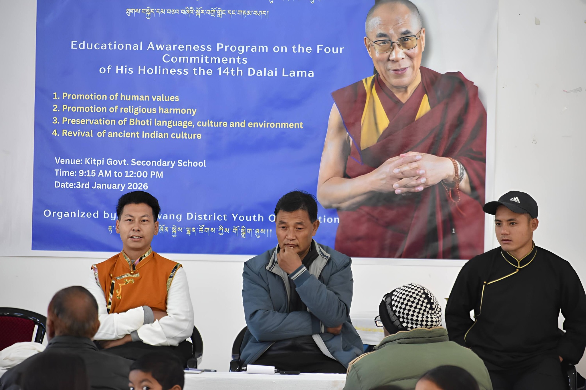 印度阿鲁纳恰尔邦达旺青年联合会(All Tawang District Youth Organization)于1月3日组织专题活动,向当地民众介绍达赖喇嘛尊者长年以来倡导的四大人生使命:推广人类一体性理念、促进宗教和谐、保护西藏语言文化、复兴古印度那烂陀传统智慧。此次活动吸引众多达旺县居民参与。