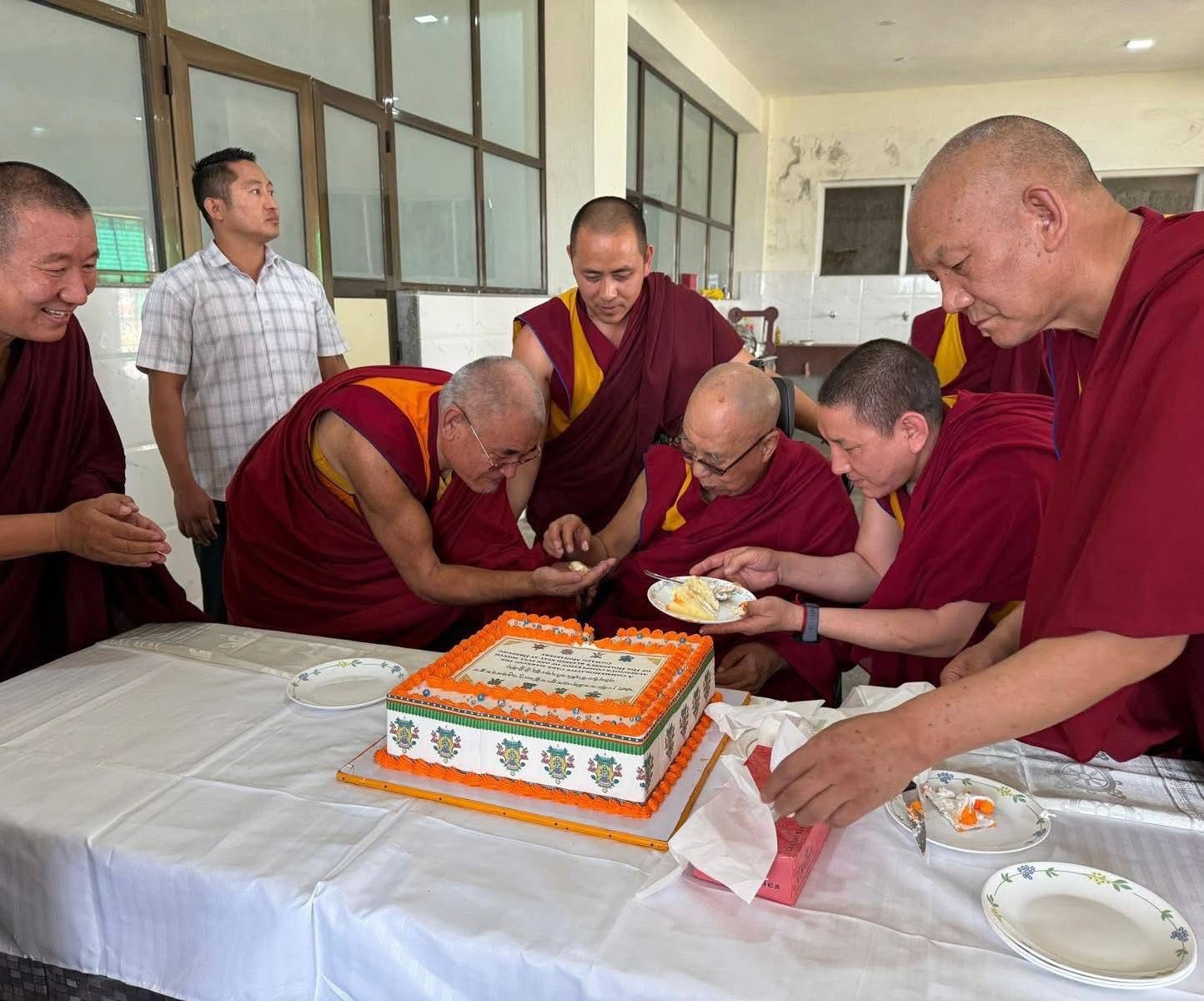 此外,达赖喇嘛尊者莅临印南卡纳塔克邦哲蚌寺满一个月之际,该寺特别为尊者举办了纪念活动。据设立于美国的果芒僧院佛法中心“Drepung Gomang Dophen Jamtseling”脸书账号发布的消息指出,达赖喇嘛尊者于昨天莅临哲蚌寺厨房,并品尝了厨师们特别准备的配有八吉祥图案的蛋糕。