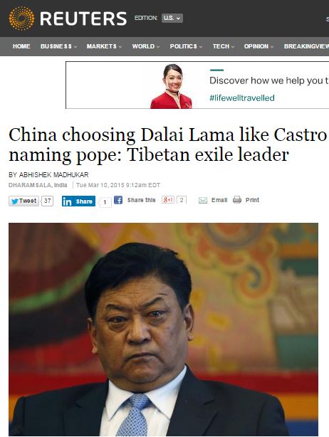 【西藏之声2015年3月11日报道】藏人行政中央司政洛桑森格,针对中共官员白玛赤林日前就达赖喇嘛转世问题发表的言论,提出了批评,指中共决定达赖喇嘛的转世,就如让卡斯特罗来任命下一任罗马教皇一样荒谬。