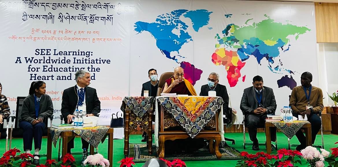 【西藏之声2022年12月9日报道】达赖喇嘛尊者于今早在印北达兰萨拉,应邀出席了主题为“社会与情绪及伦理教育(SEE Learning):内心与思想教育之全球倡议”的会议开幕仪式。尊者在致词时指出,为了自己、家人以及社会的幸福,无论一个人有无宗教信仰,都要心存善念。尊者还指出,给人类社会创造幸福,以及建立世界和平不只是一两个人的责任和义务,这是所有人应共同努力实现的目标。